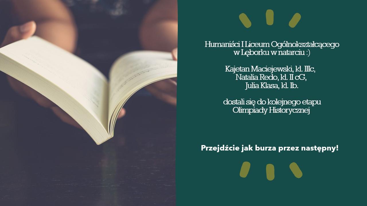 Uwaga nasi humaniści w natarciu! Olimpiada Historyczna, etap okręgowy przed nimi. Śmiało do przodu po historyczne laury. Powodzenia!