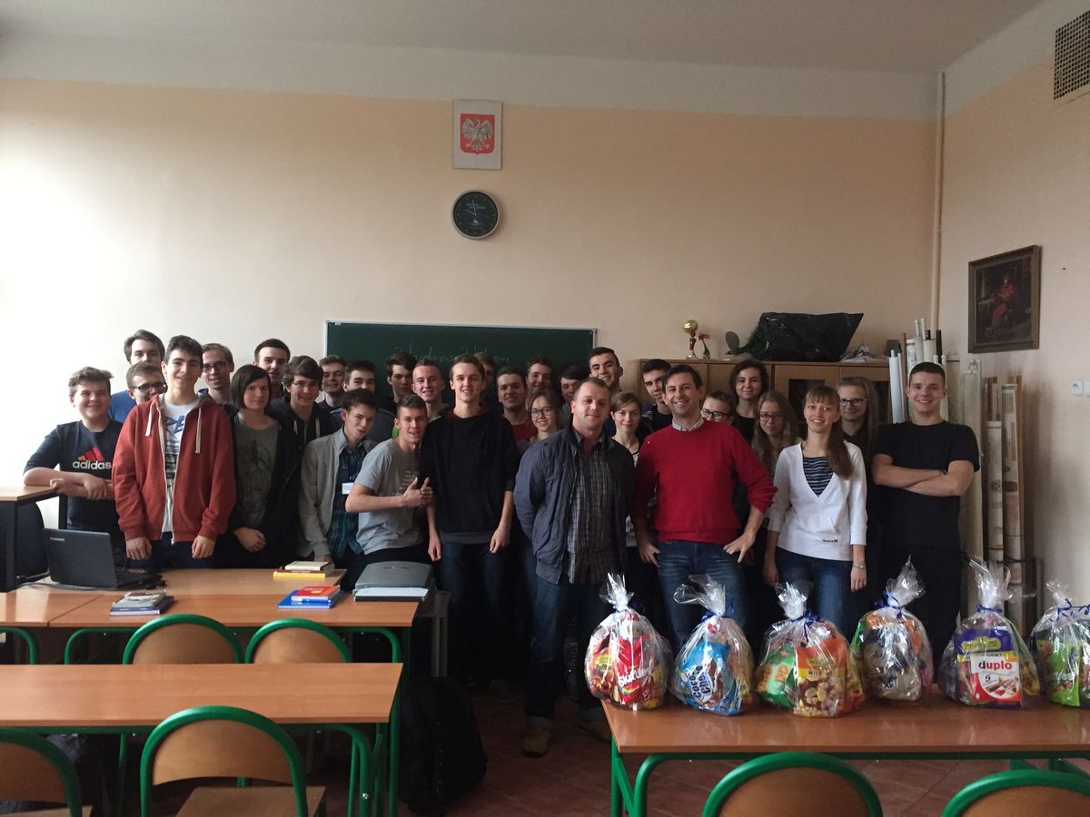 Na zaproszenie wychowawcy klasy IIA prof. Tomasza Tutaka, gościliśmy dzisiaj w szkole pana Pawła Kubiaka - sołtysa Obliwic, któremu przekazaliśmy paczki mikołajkowe, które w najbliższą niedzielę zostaną przekazane dzieciom z potrzebujących rodzin.
