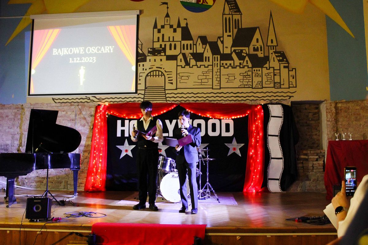 W tym roku wszystko odbywało się w konwencji Hollywood. Nasi goście zostali przeniesieni w wielki,filmowy, hollywoodzki świat. Część artystyczna, w wykonaniu naszych uczniów przebiegła w bajkowym anturażu.