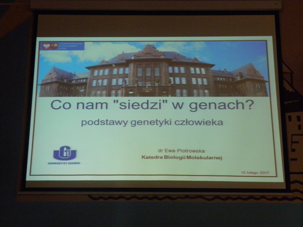Dnia 10.02.2017 roku w naszym LO mieliśmy przyjemność gościć pracowników naukowych Uniwersytetu Gdańskiego. Podczas trzech godzin wykładów mogliśmy wzbogacić swoją wiedzę z genetyki.