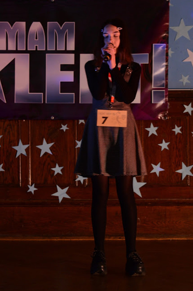 Miejsce I. Klaudia Juchniewicz klasa II D (piosenka pt. "Jestem kamieniem" autorstwa Kayah)