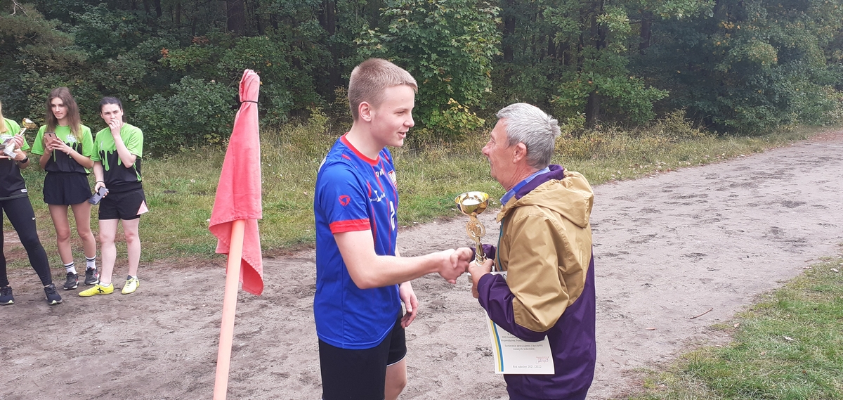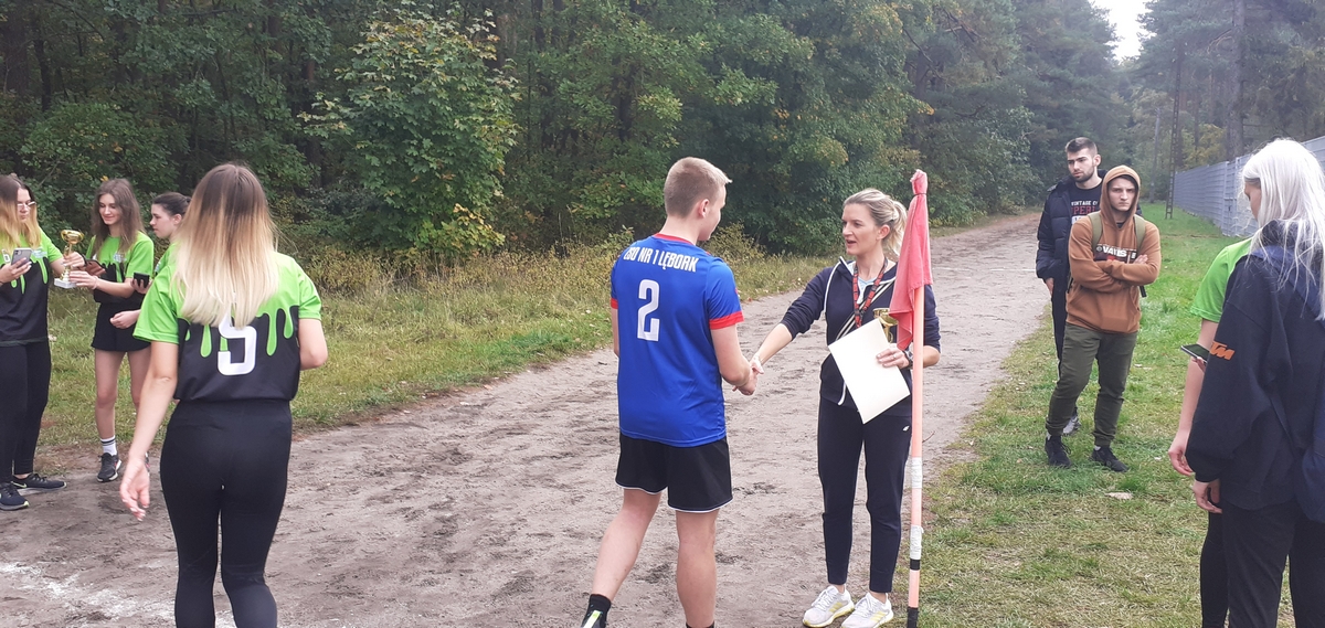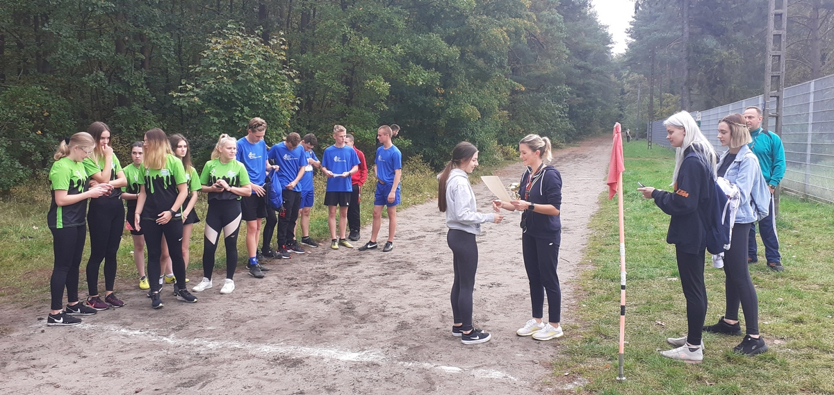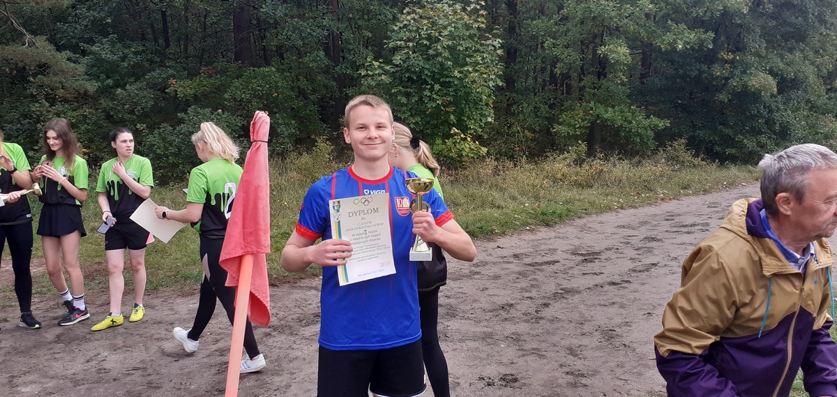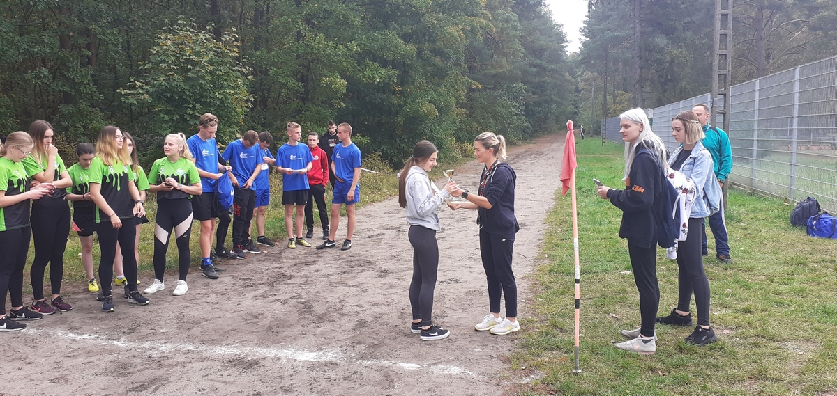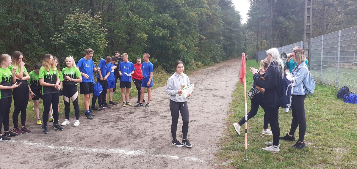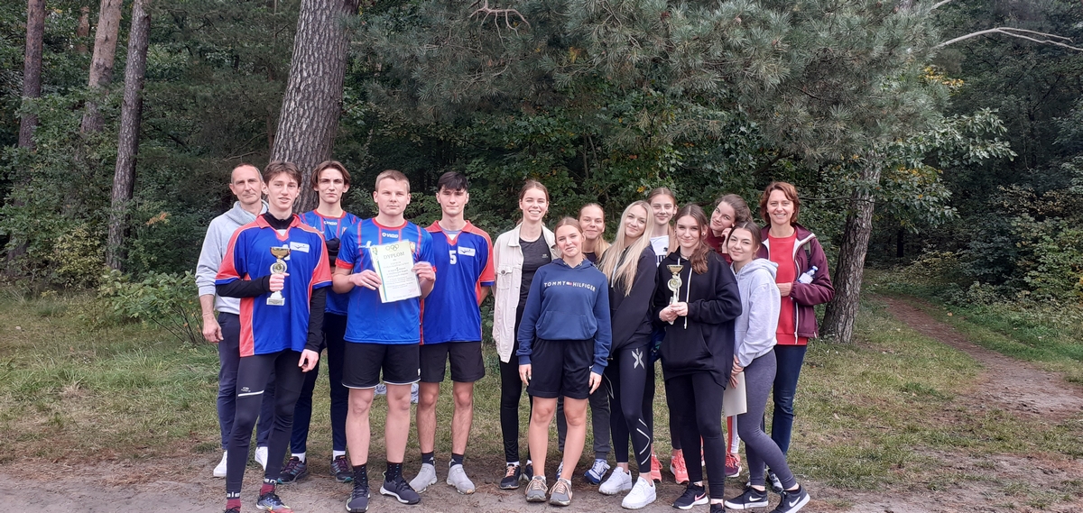 We czwartek 7 października w lasku przy stadionie miejskim w Lęborku w ramach Powiatowej Licealiady odbyły się zawody w sztafetowych biegach przełajowych dziewcząt i chłopców szkół ponadpodstawowych. Do rywalizacji dziewcząt zgłosiły się trzy drużyny. Po bardzo pasjonującej walce na trasie nasze dziewczęta wywalczyły srebro ze stratą kilku sekund do zwycięskiej reprezentacji PCE. W kategorii chłopców do zawodów przystąpiły cztery zespoły. Tutaj również walka była wyrównana i zacięta do ostatnich metrów. Reprezentacja naszej szkoły na czwartej zmianie uzyskała wystarczającą przewagę, aby utrzymać ją do końca biegu, tym samym zdobywając ostatecznie złoto.
